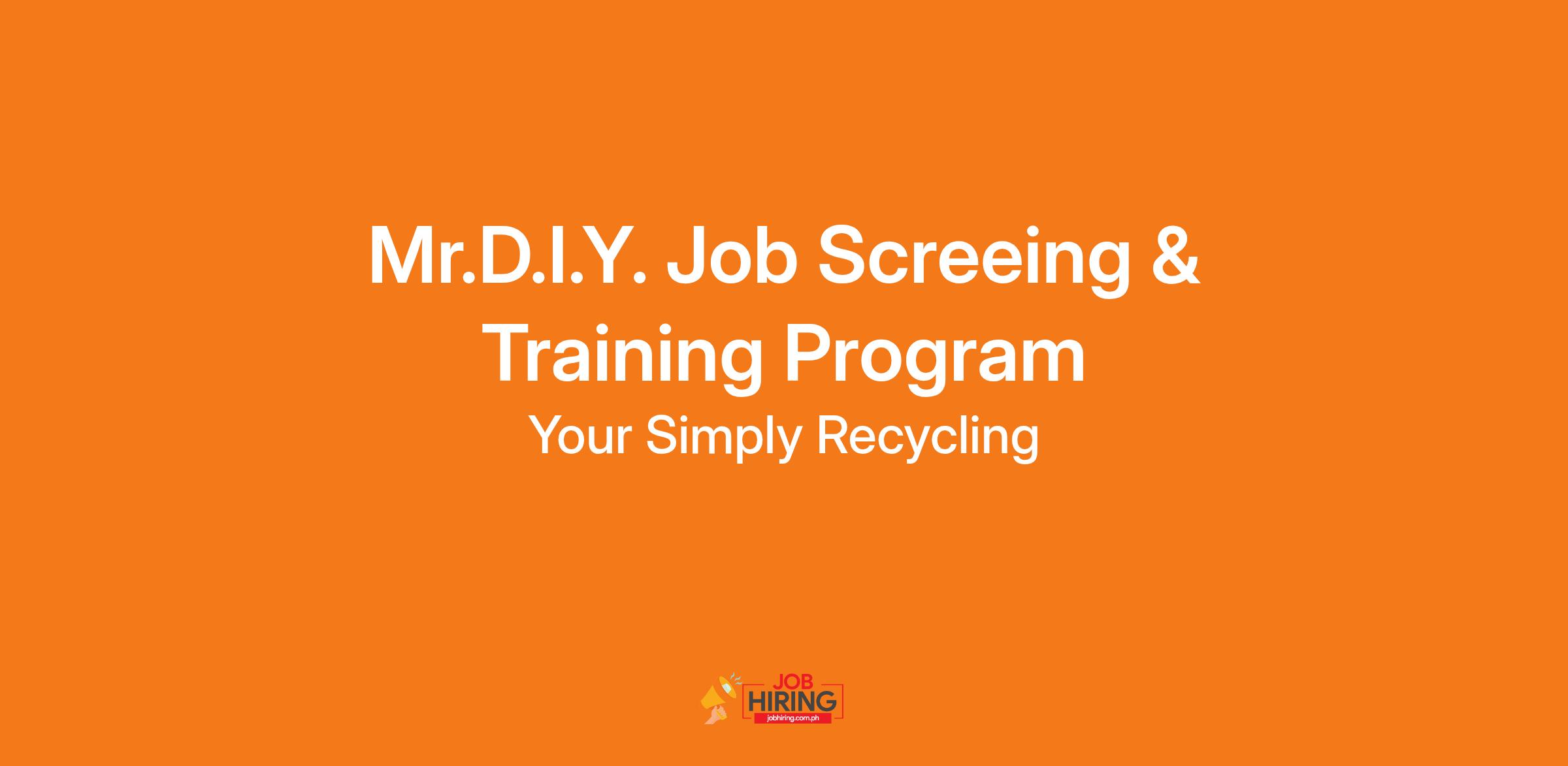 Your Simply Recycling (YSR) is currently screening and preparing potential candidates for job placement opportunities with MR.D.I.Y, one of the largest retail and home improvement chains in the Philippines.