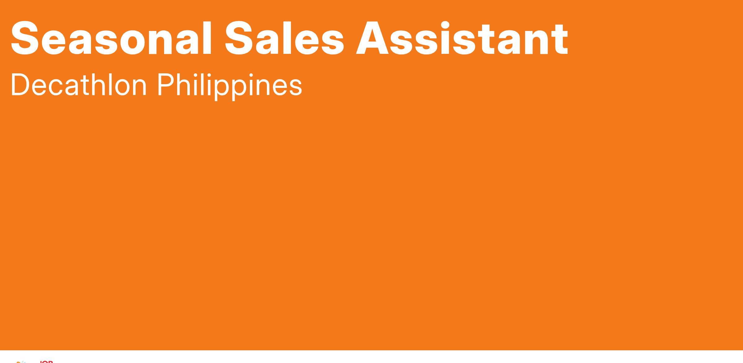 Join a rapidly growing global company here at Decathlon Philippines! We are looking for like-minded individuals who match our company values who share our passion for Sport!